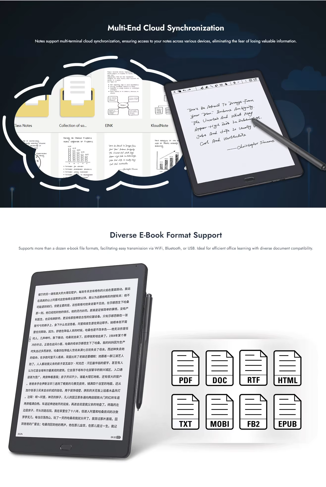* Skrin E-Ink Perlindungan Mata 10.3 inci dengan Resolusi HD