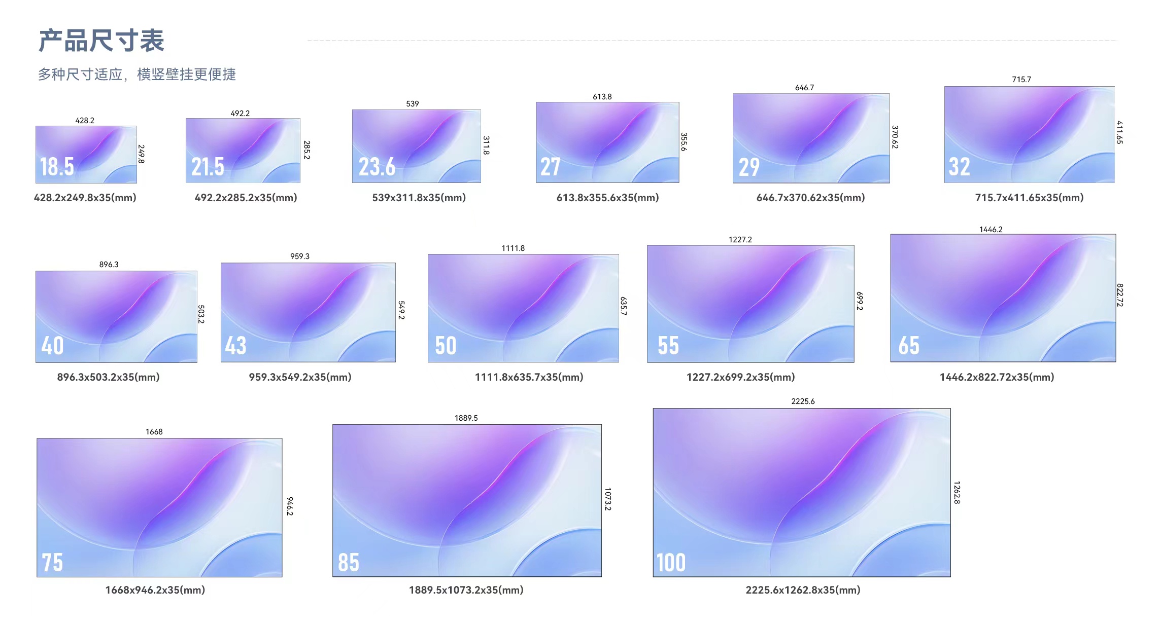 | Saiz skrin LCD | 21.5/32 "/43"/50 "/55"/65 "Pilihan |